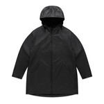 Fit Regular Fabric 100% recycled PU, waterproof YKK zips (10k rated WP) Construction Dome closure at sleeve cuffs, seam taped, yoke vent, cinch cord & peak extension at hood, eyelets at underarm, front pockets with welt covers Invisible lining access zip to assist with branding